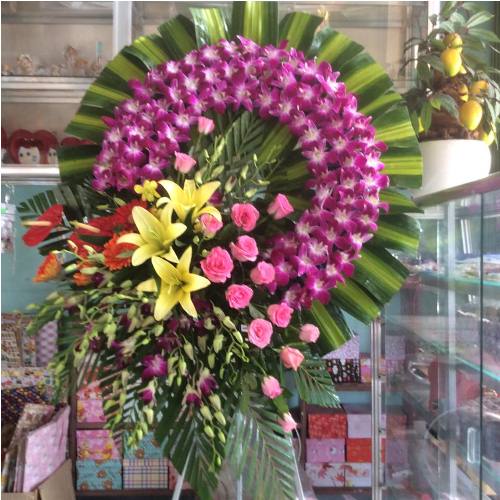 Ngoài vòng hoa, lẵng hoa tang lễ thì bạn cũng có thể chọn kệ hoa tang lễ, thời điểm gửi hoa tốt nhất sau khi khâm niệm hoặc trước khi di quan nhé!